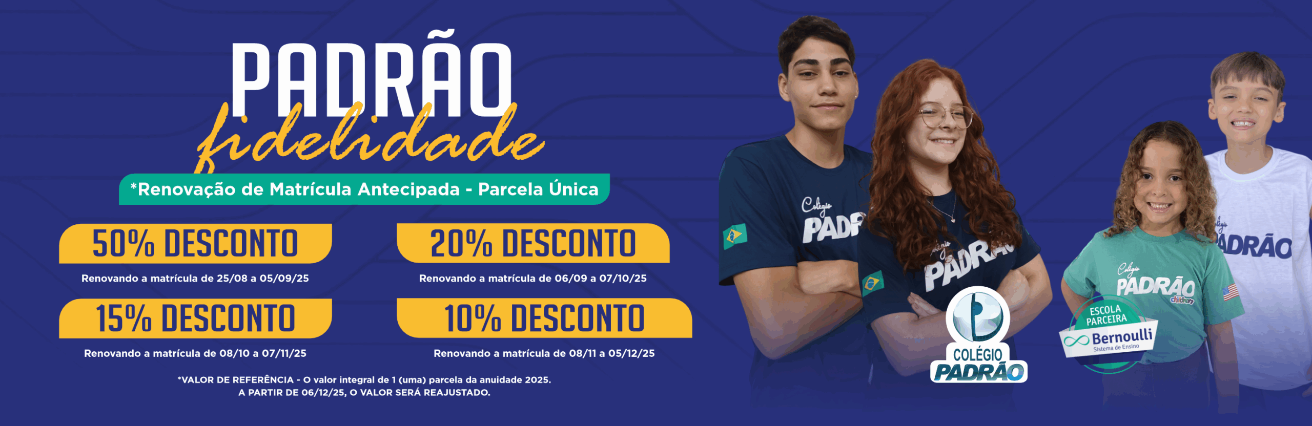 No COLÉGIO PADRÃO, o estudante tem formação integral, para a trajetória escolar e também de vida, desde o Infantil ao Ensino Médio.